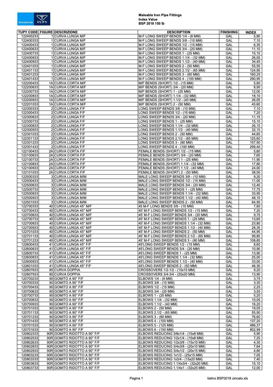 Preisliste Jannone Ferro Tubi BSP2018 Zincato