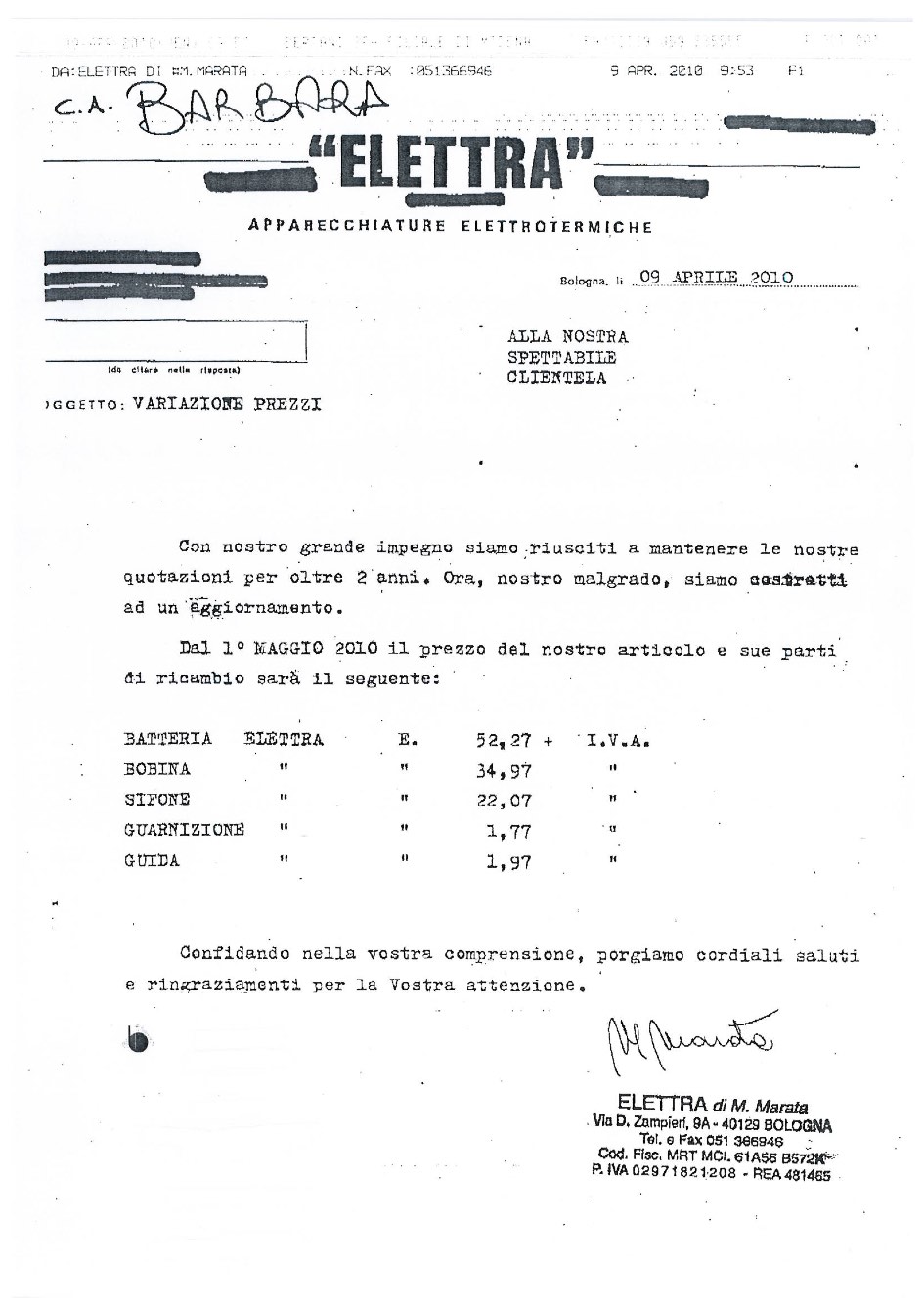 Price list Elettra MAGGIO 2010