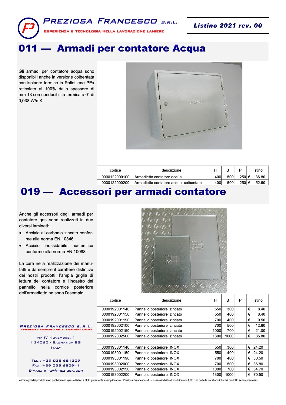 Lista de precios Preziosa Francesco Armadi per contatore Acqua e Accessori