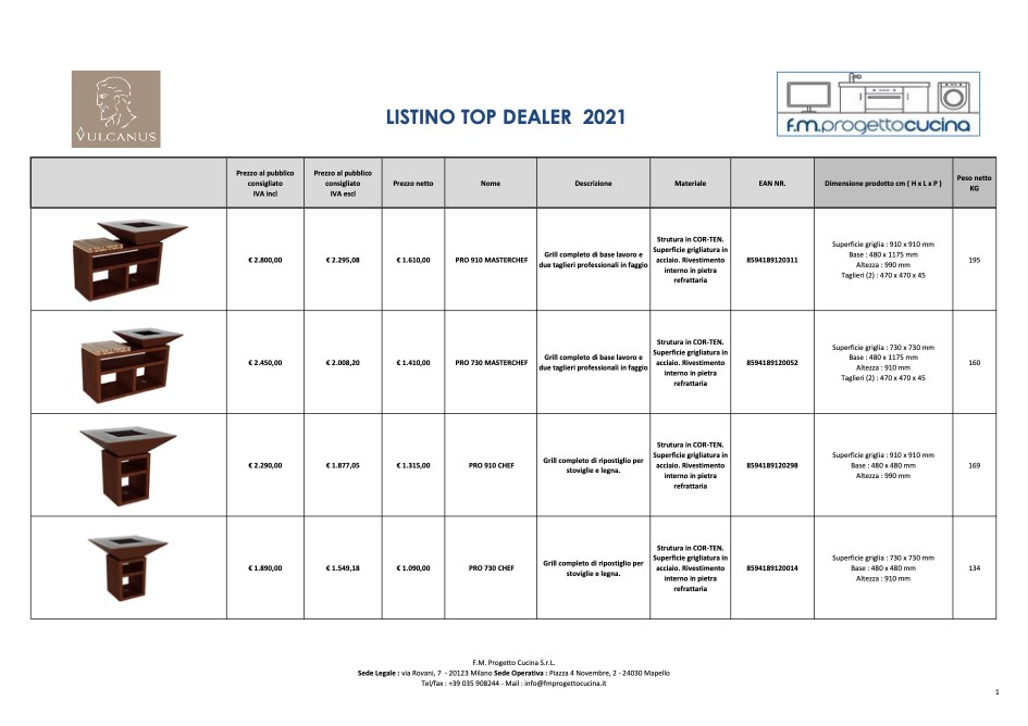 Liste des prix Vulcanus Top dealer