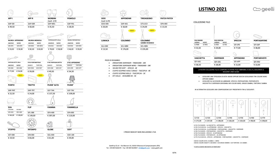 Listino prezzi Geelli 2021