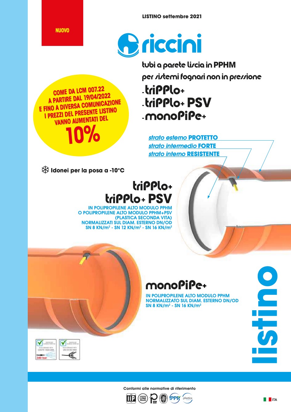 Listino prezzi Riccini TUBI A PARETE LISCIA IN PPHM - NON IN PRESSIONE