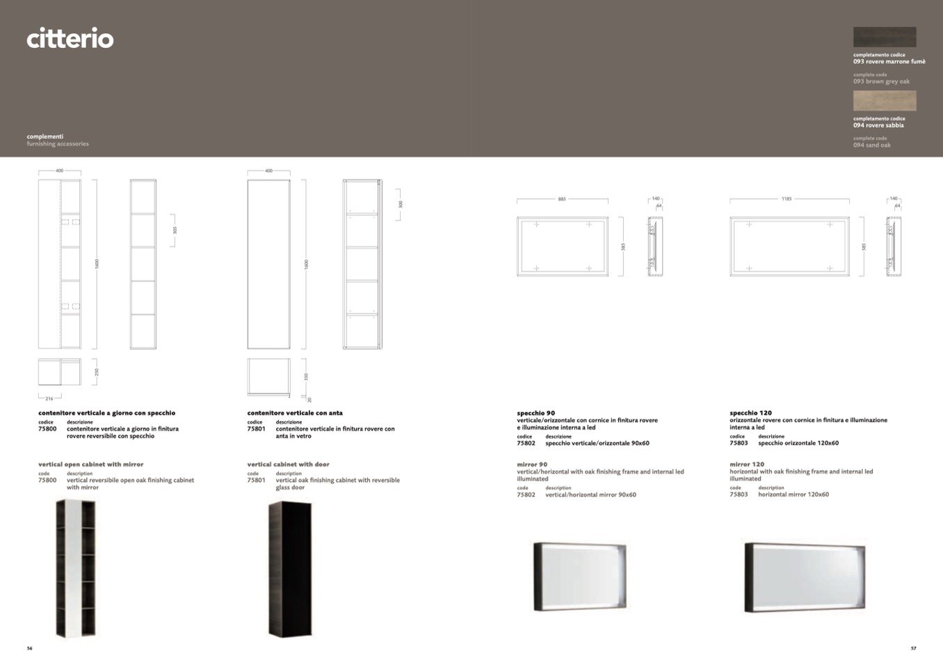contenitore verticale a giorno in finitura