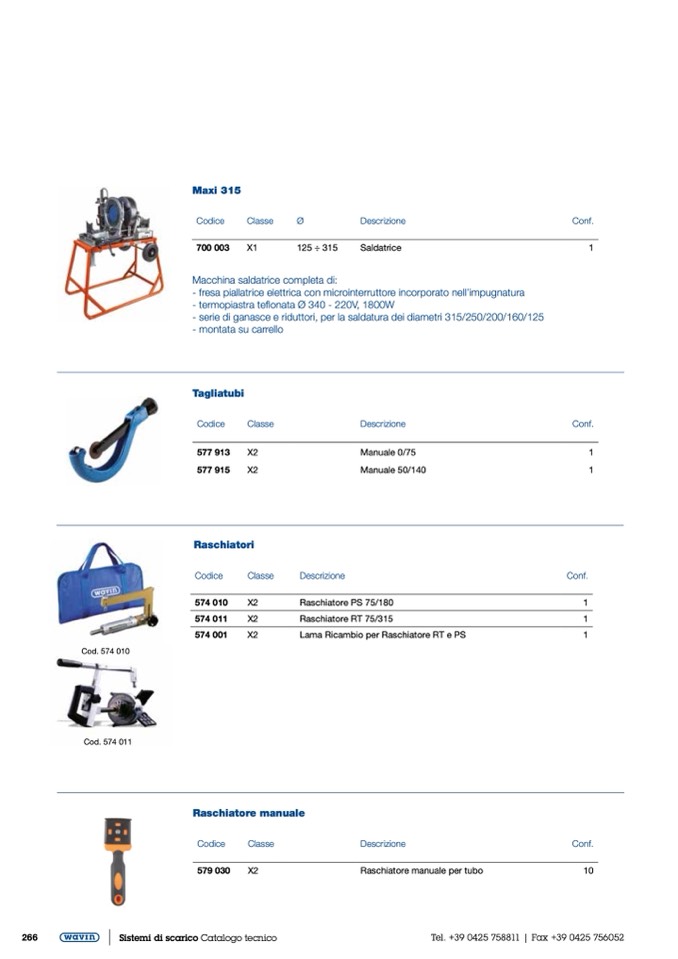 - serie di ganasce e riduttori, per la saldatura dei diametri 315/250/200/160/125