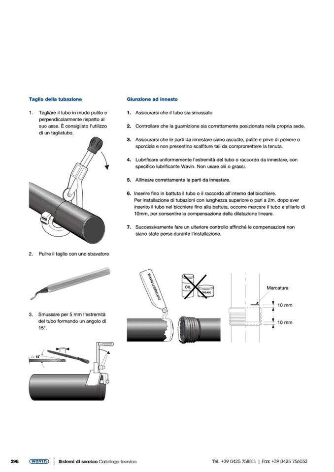 specifico lubrificante Wavin. Non usare olii o grassi.