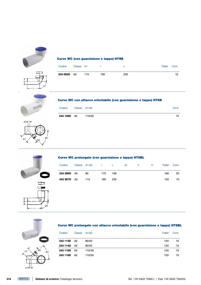 Curve WC (con guarnizione e tappo) HTSB