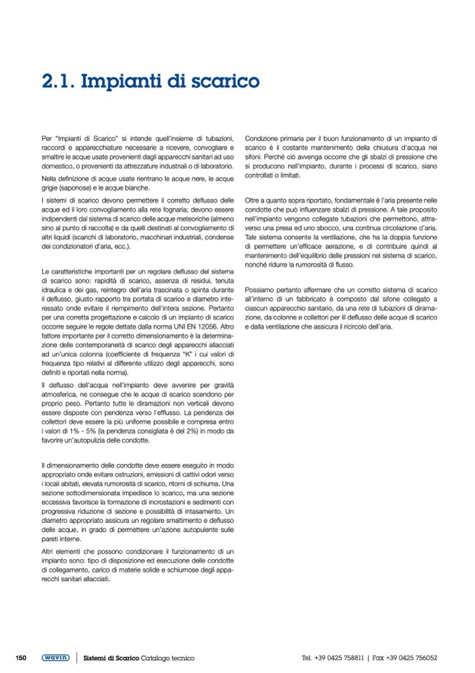 zione, da colonne e collettori per lil deflusso delle acque di scarico