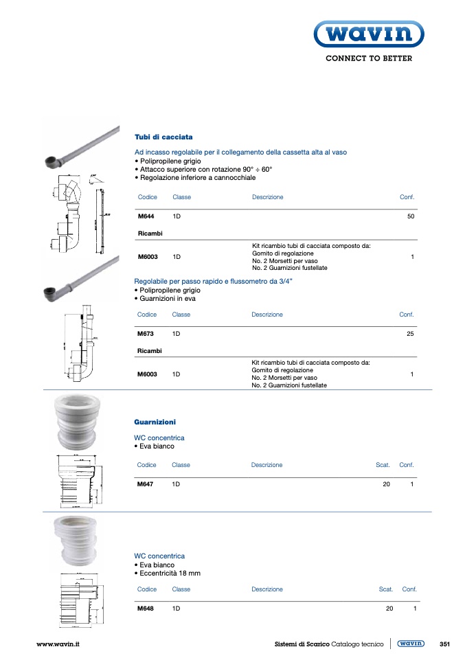 Ad incasso regolabile per il collegamento della cassetta alta al vaso