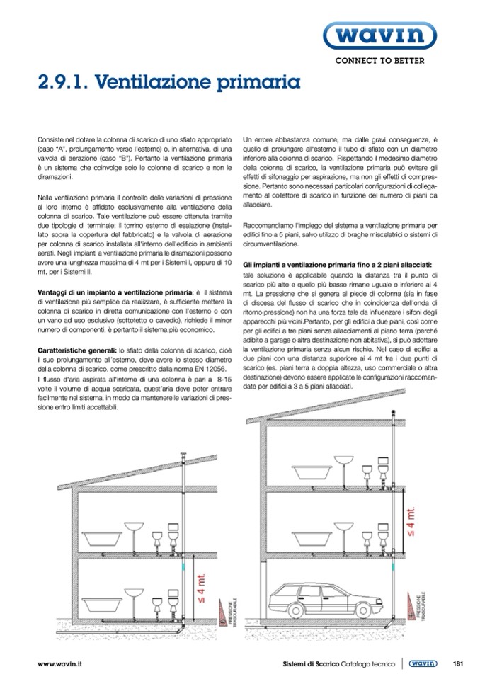 colonna di scarico. Tale ventilazione può essere ottenuta tramite