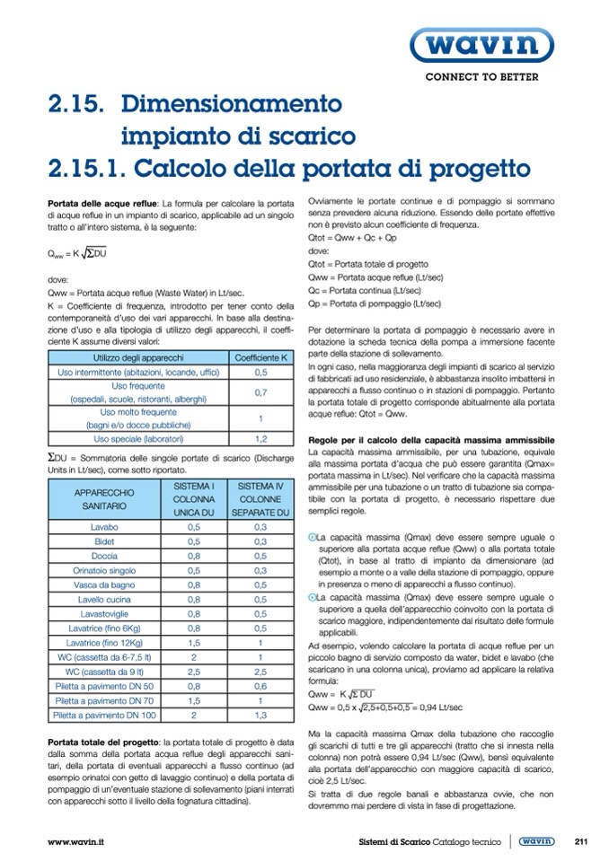 Qww = Portata acque reflue (Waste Water) in Lt/sec.
