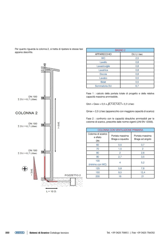 colonne di scarico, prescritte dalle norme vigenti (UNI EN 12056).
