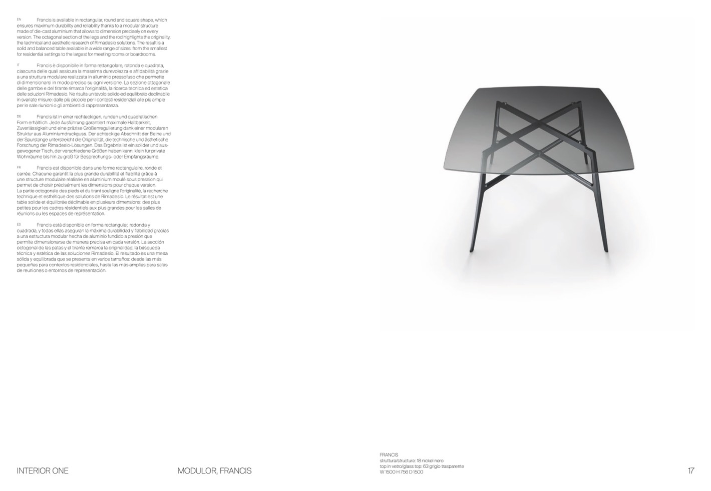delle soluzioni Rimadesio. Ne risulta un tavolo solido ed equilibrato declinabile