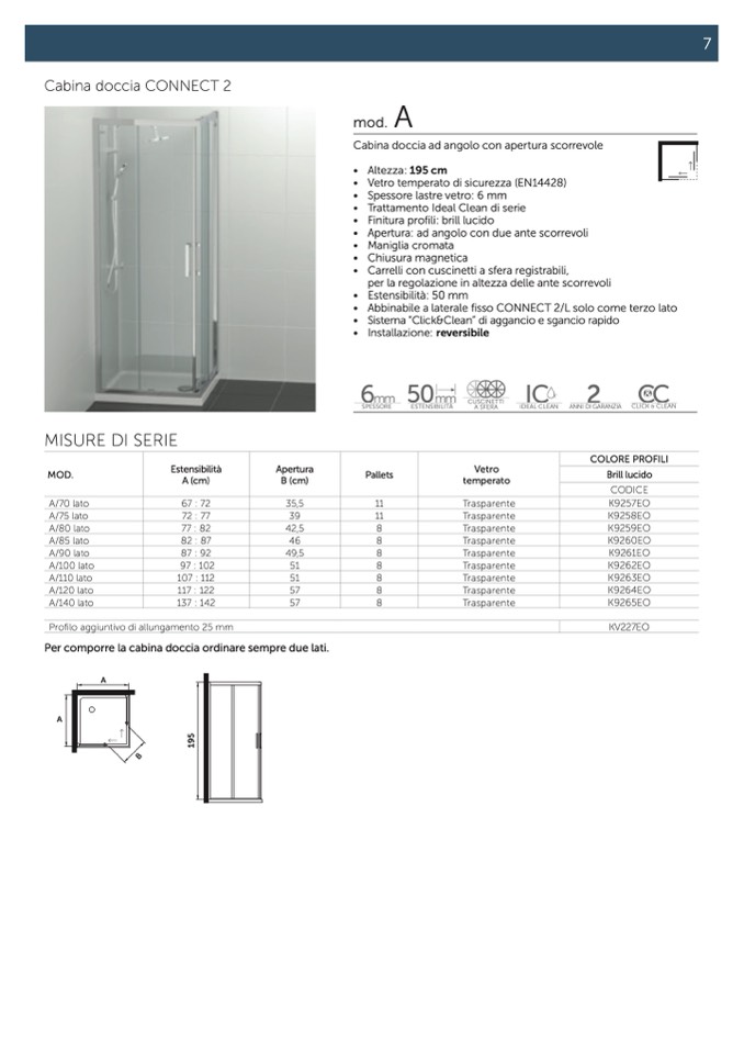• Abbinabile a laterale fisso CONNECT 2/L solo come terzo lato