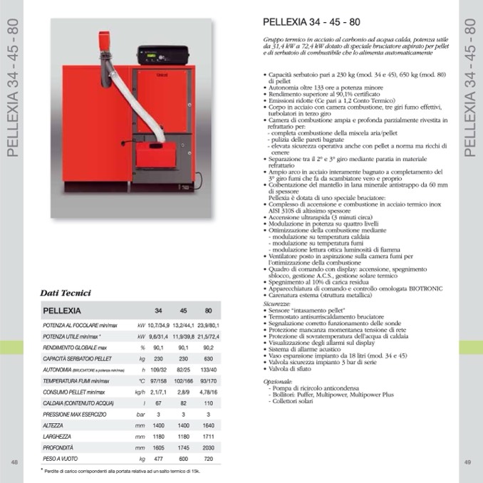 da 31,4 kW a 72,4 kW dotato di speciale bruciatore aspirato per pellet