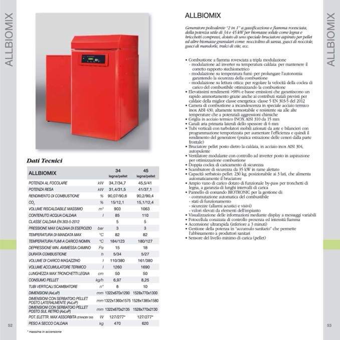 della potenza utile di 34 e 45 kW per biomasse solide come legna e