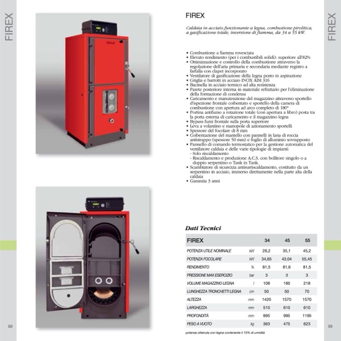 a gasificazione totale, inversione di fiamma, da 34 a 55 kW.