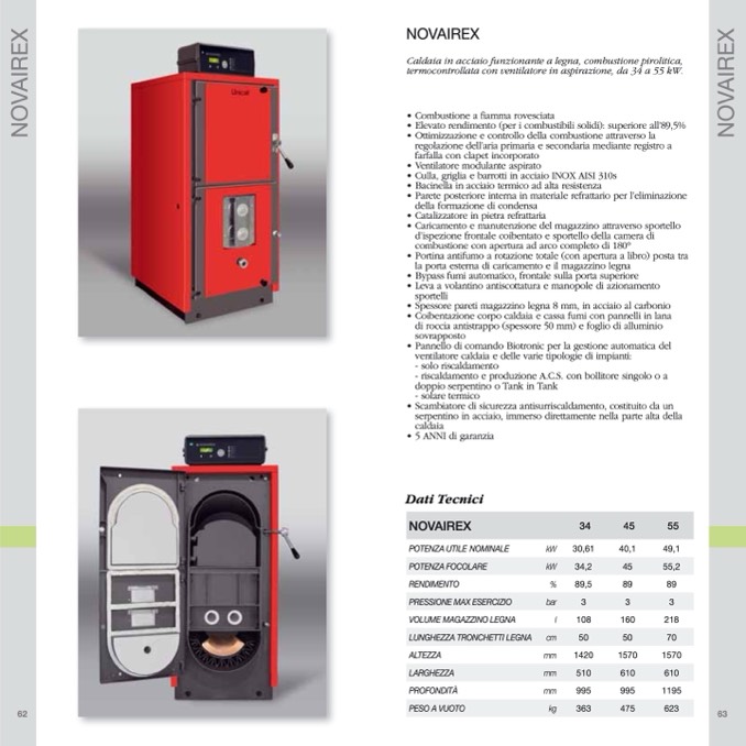 Caldaia in acciaio funzionante a legna, combustione pirolitica,