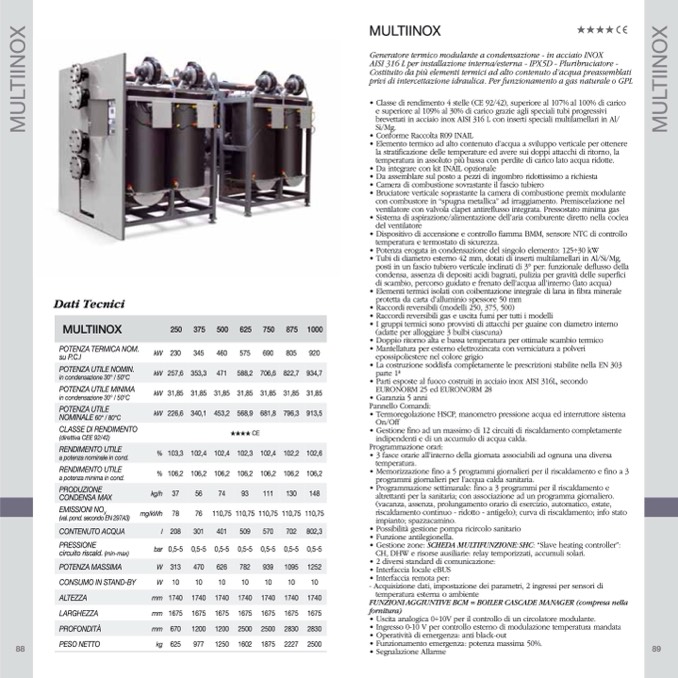 • Potenza erogata in condensazione del singolo elemento: 125÷30 kW