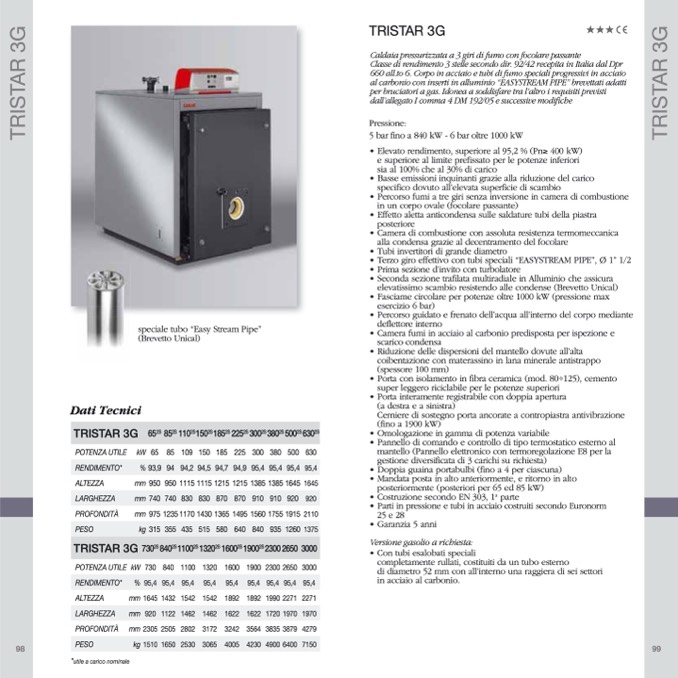 5 bar fino a 840 kW - 6 bar oltre 1000 kW