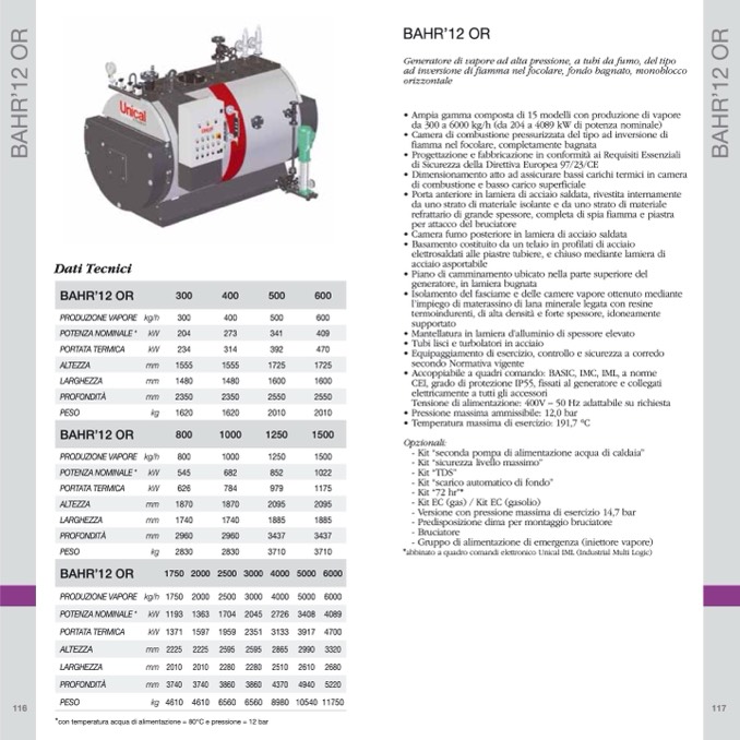 da 300 a 6000 kg/h (da 204 a 4089 kW di potenza nominale)