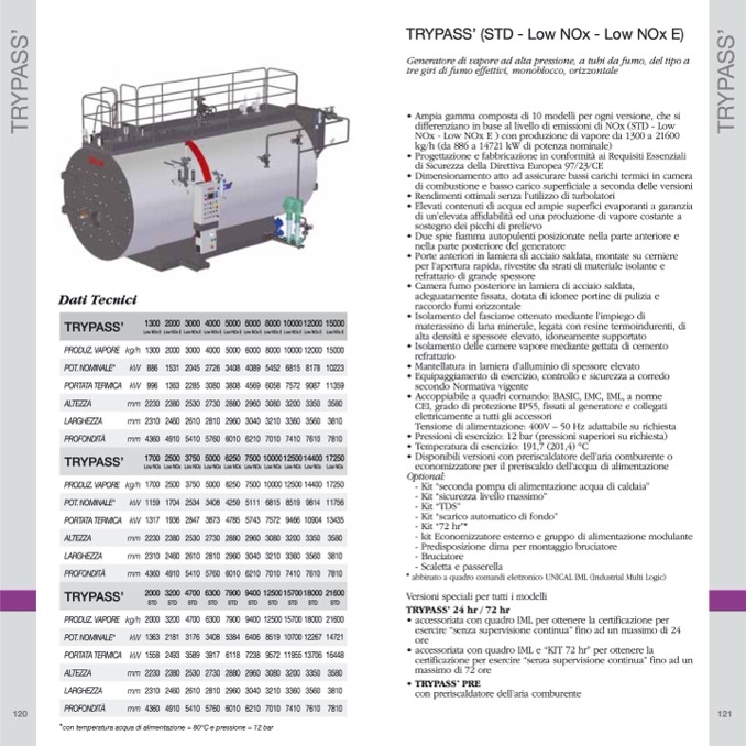 NOx - Low NOx E ) con produzione di vapore da 1300 a 21600