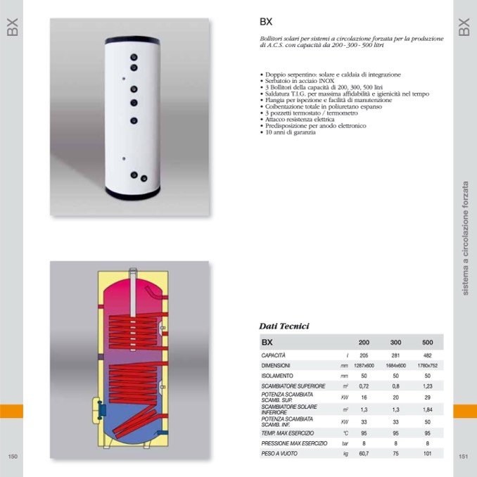 Bollitori solari per sistemi a circolazione forzata per la produzione