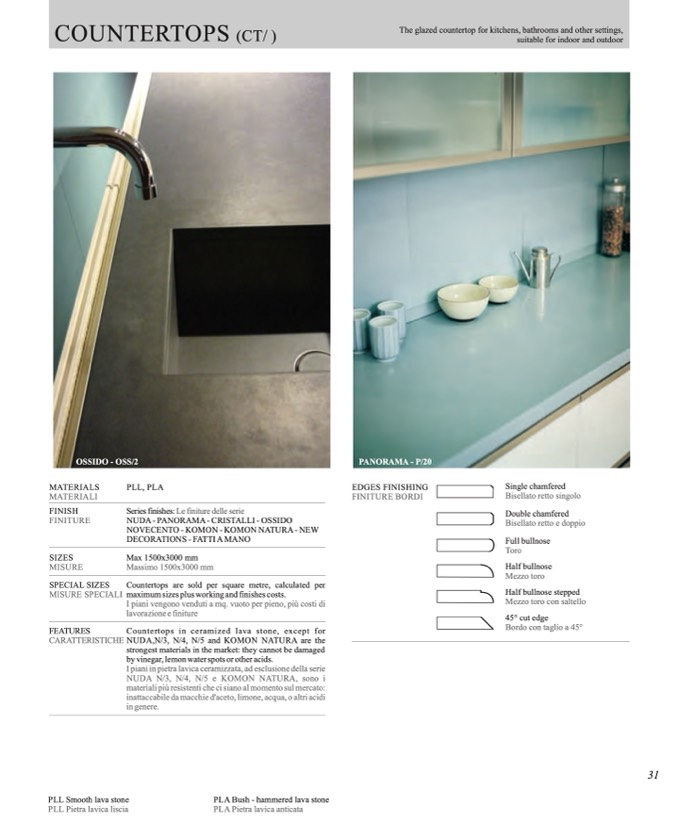 I piani in pietra lavica ceramizzata, ad esclusione della serie