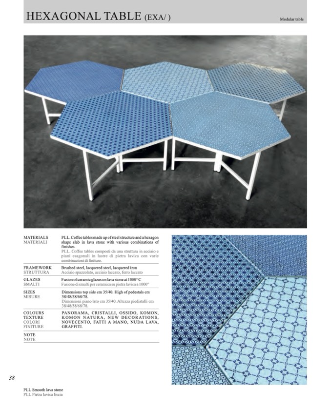 PLL. Coffee tables made up of steel structure and a hexagon
