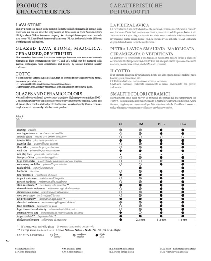 lavorazioni: pietra lavica liscia (PLL) e pietra lavica anticata (PLA), entrambe