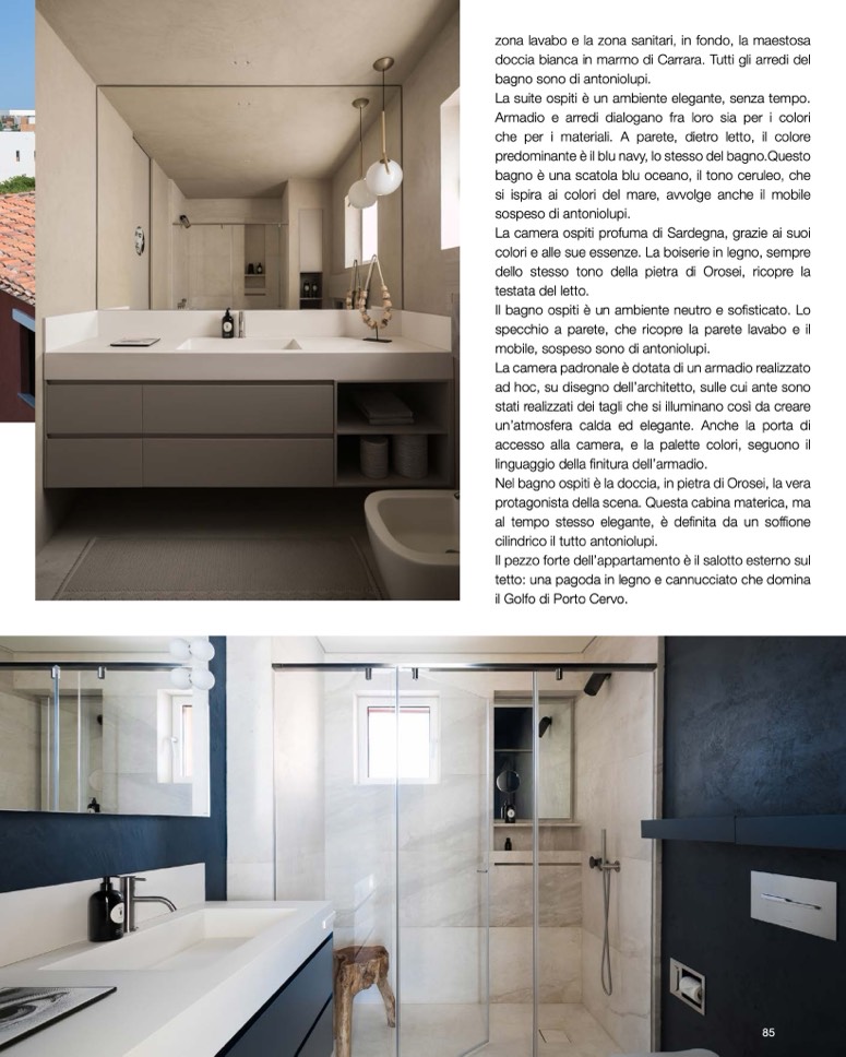 Nel bagno ospiti è la doccia, in pietra di Orosei, la vera