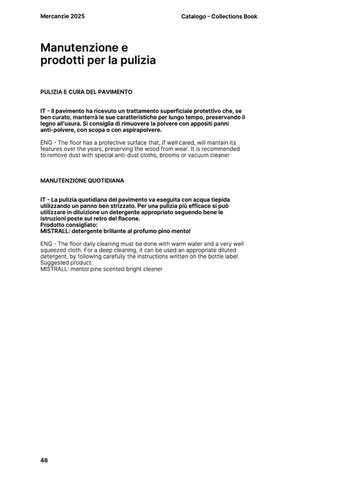 ENG - The floor daily cleaning must be done with warm water and a very well