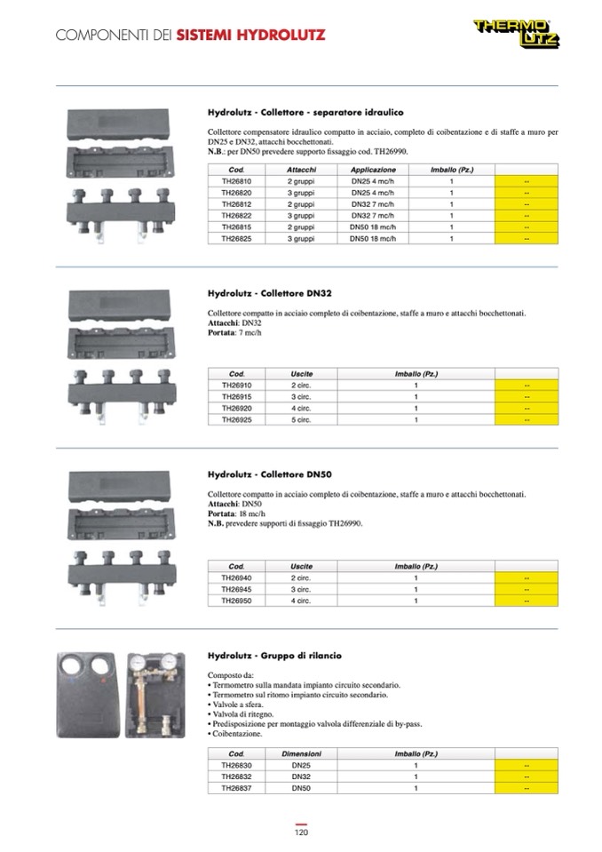 Collettore compatto in acciaio completo di coibentazione, staffe a muro e attacchi bocchettonati.