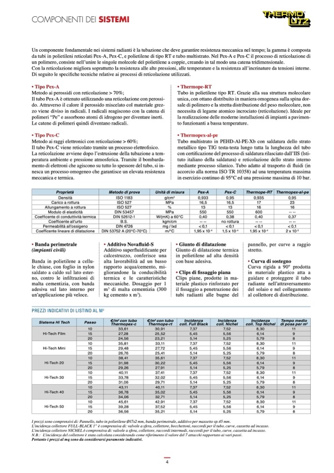 I prezzi sono comprensivi di: Pannello, tubo in polietilene Ø17x2 mm, banda perimetrale, additivo per massetto sp.45 mm.