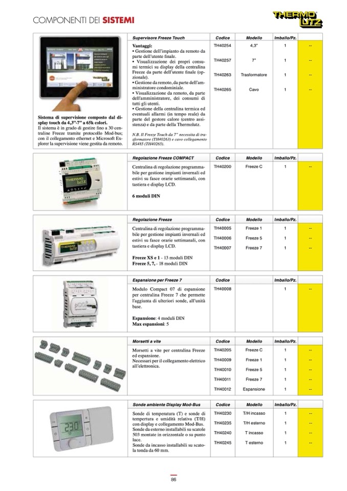 traline Freeze tramite protocollo Mod-bus;