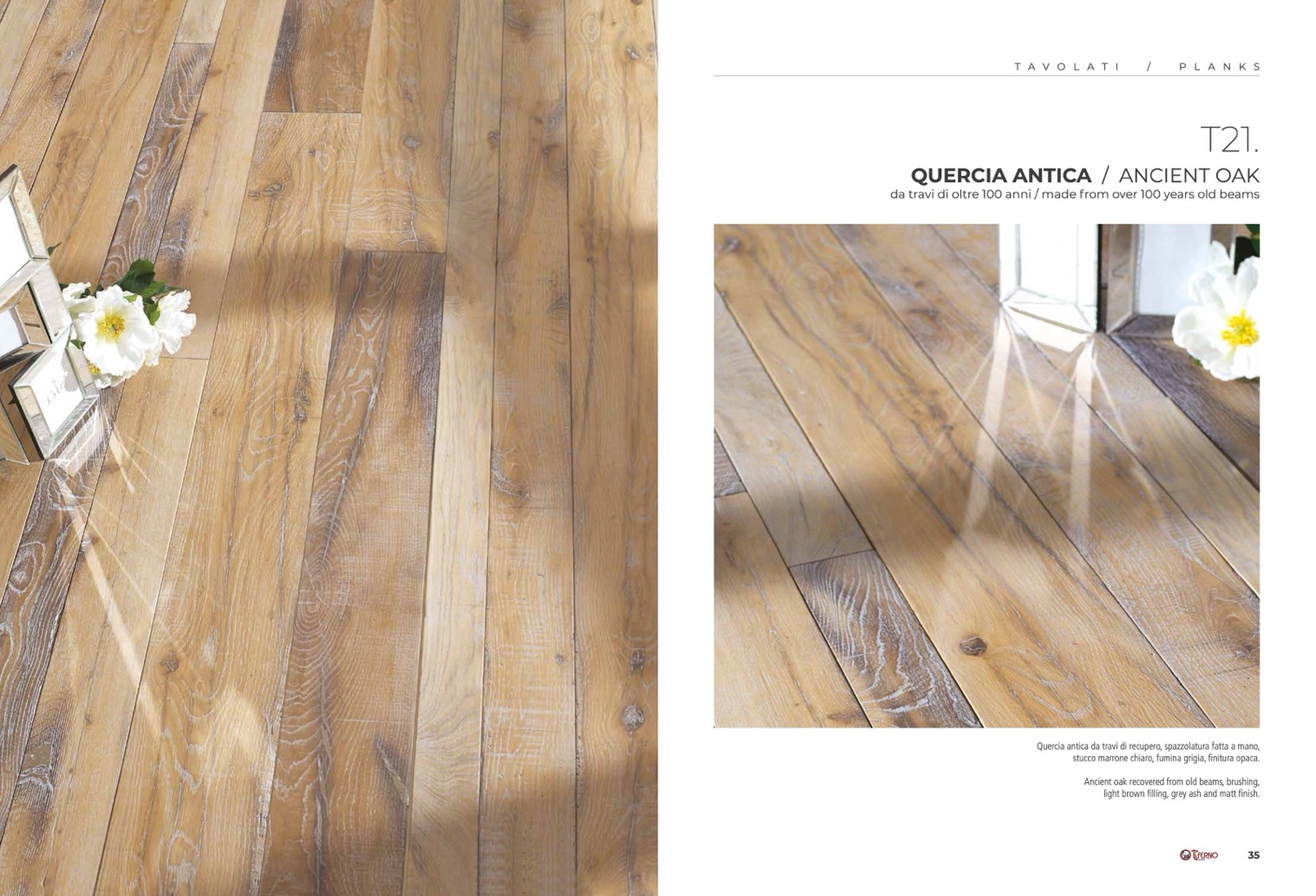 Quercia antica da travi di recupero, spazzolatura fatta a mano,