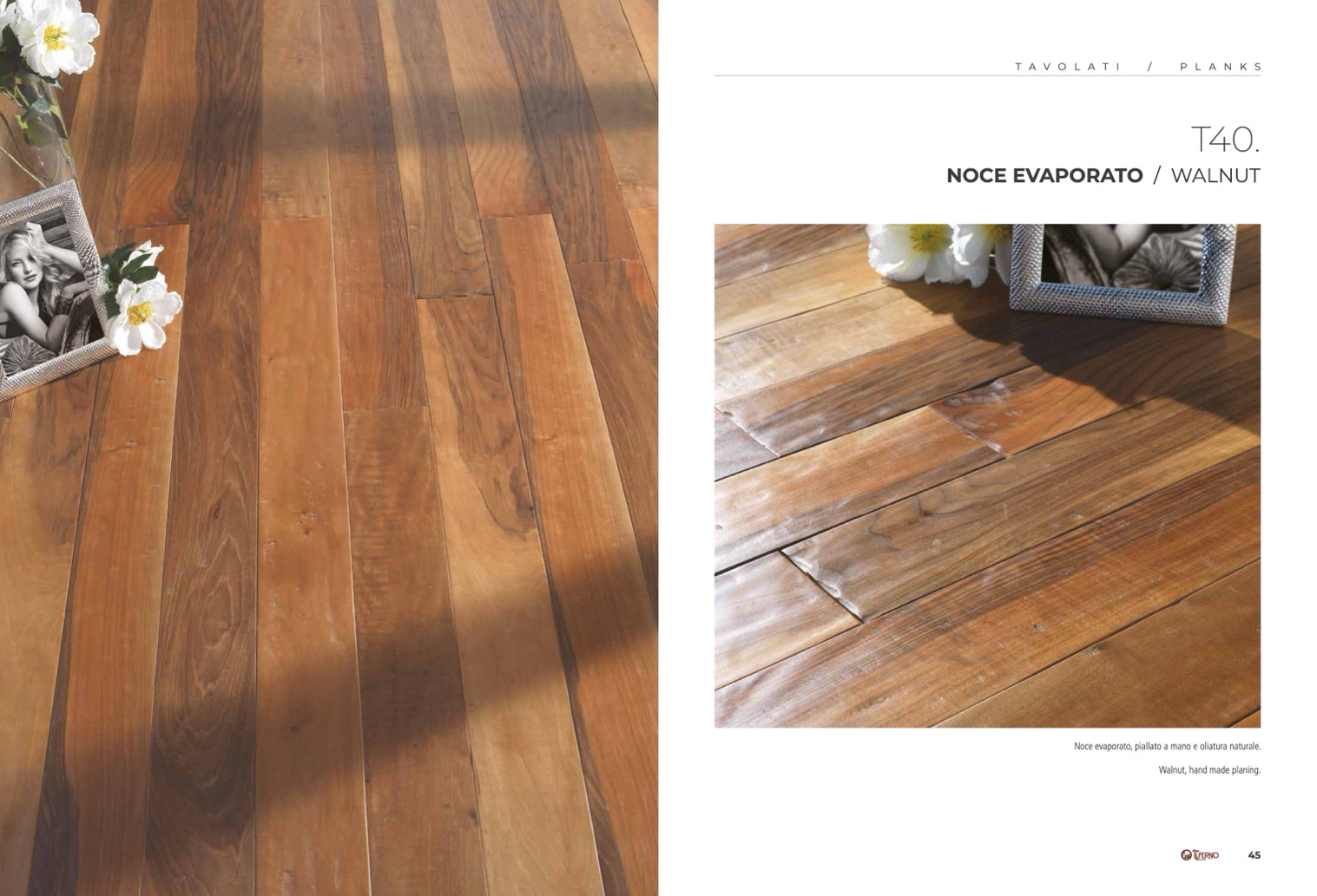 Noce evaporato, piallato a mano e oliatura naturale.