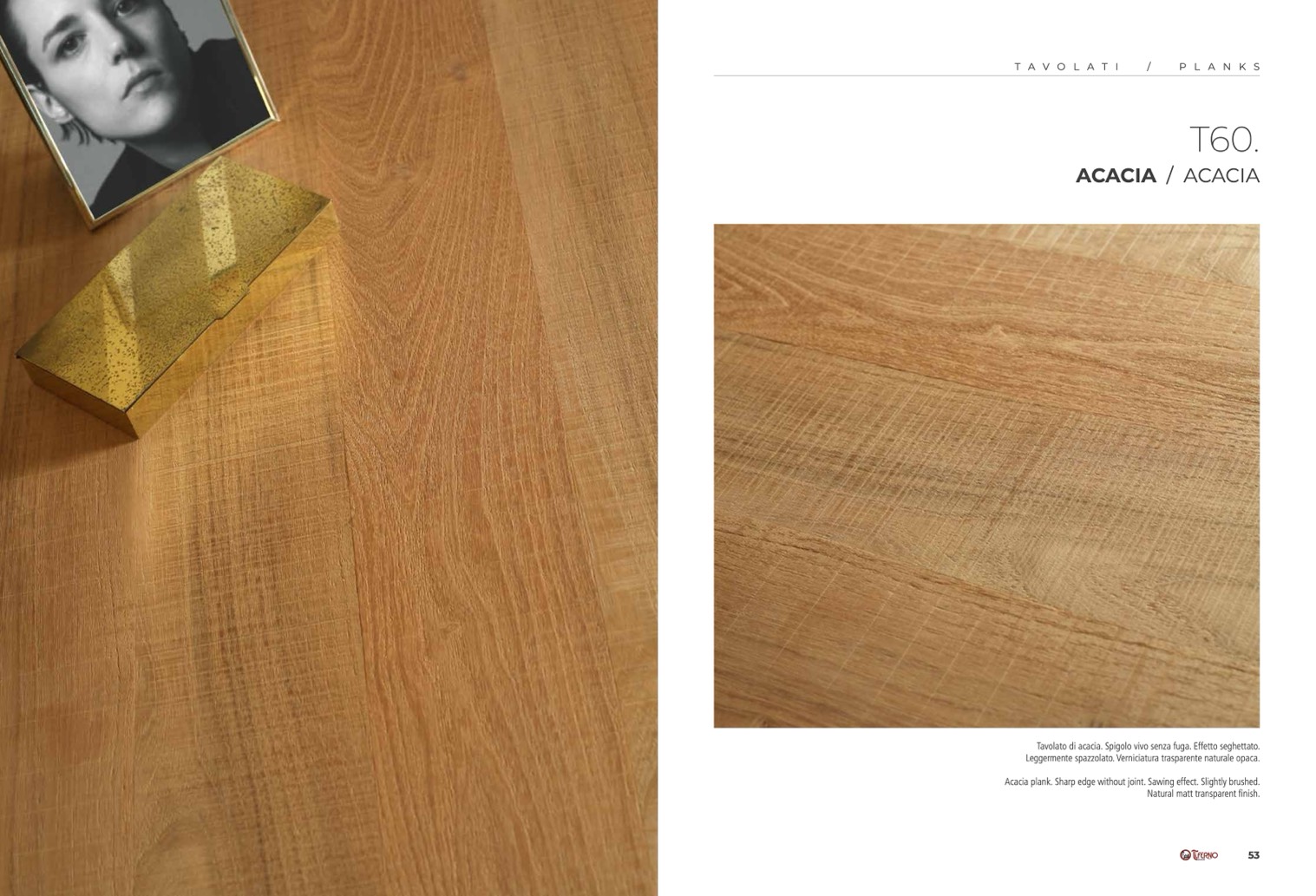 Tavolato di acacia. Spigolo vivo senza fuga. Effetto seghettato.