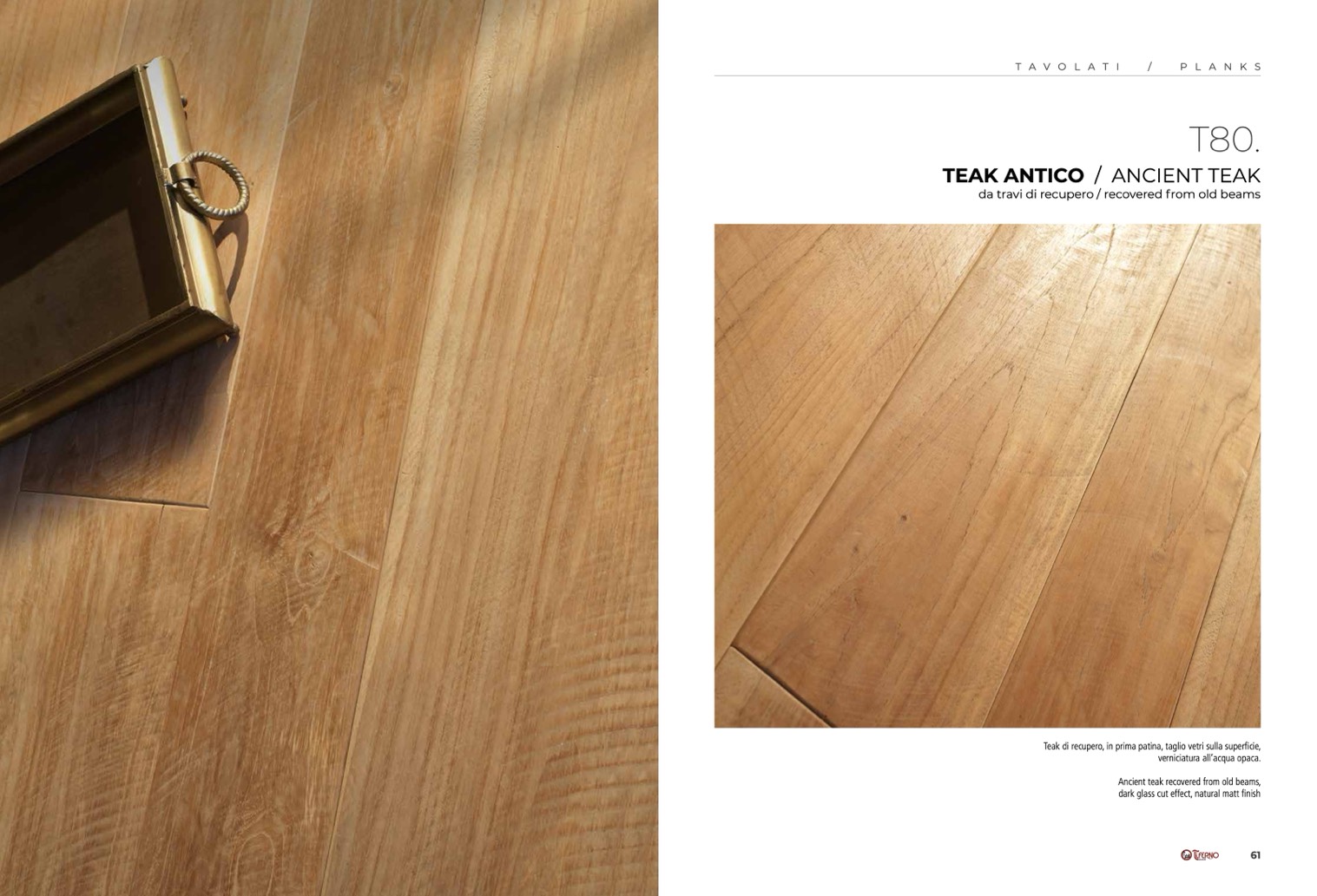 Teak di recupero, in prima patina, taglio vetri sulla superficie,