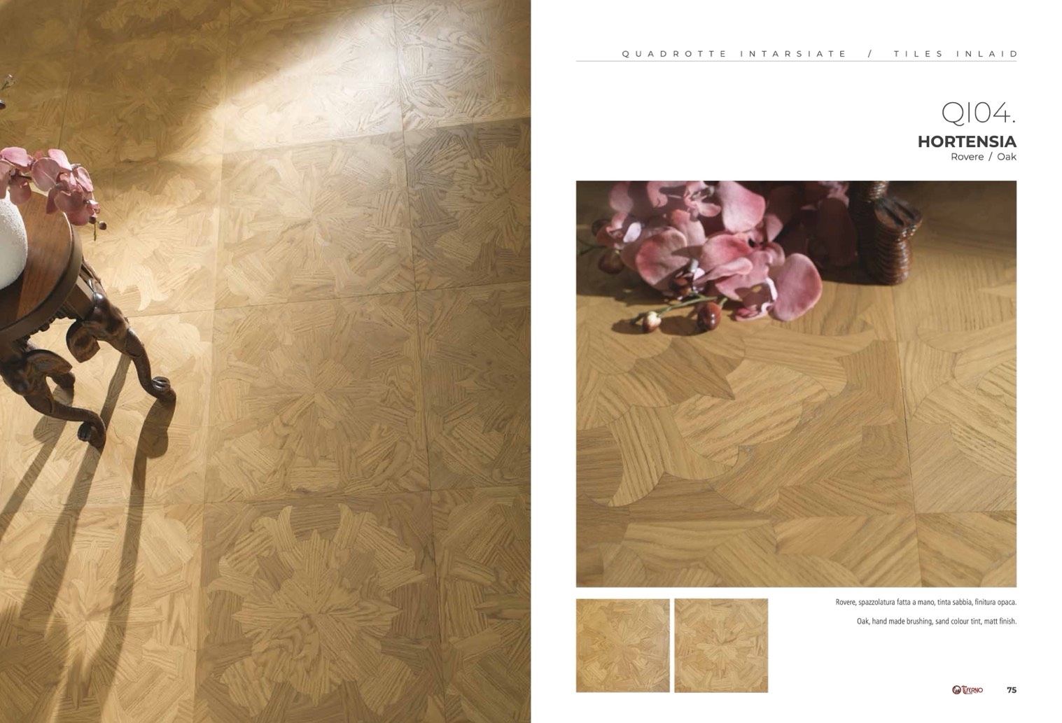 Rovere, spazzolatura fatta a mano, tinta sabbia, finitura opaca.