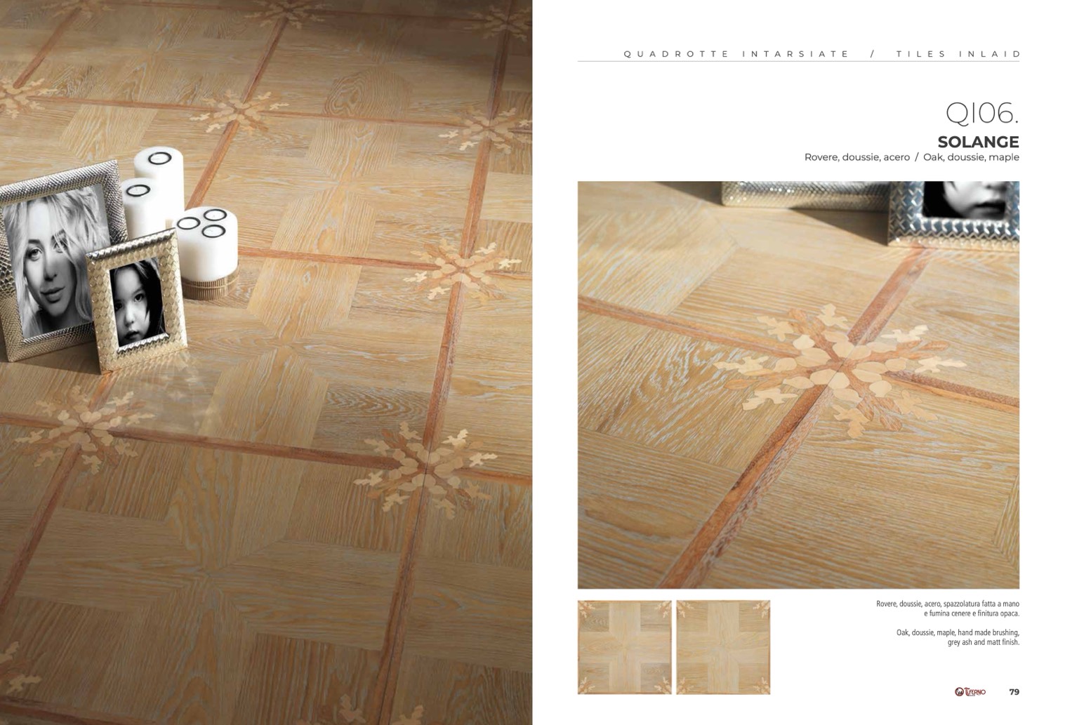 Rovere, doussie, acero, spazzolatura fatta a mano