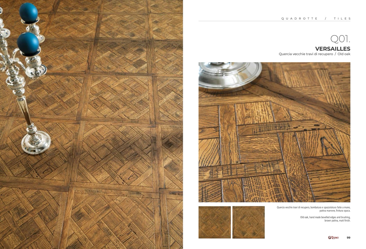 Old oak, hand made bevelled edges and brushing,