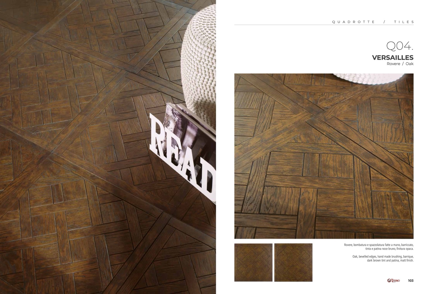 Oak, bevelled edges, hand made brushing, barrique,