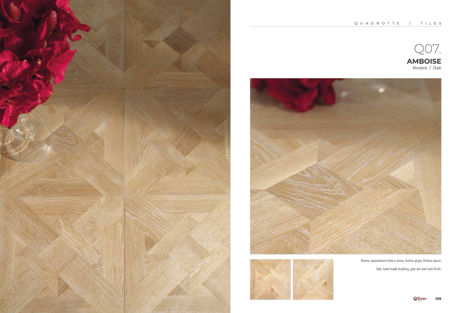 Rovere, spazzolatura fatta a mano, fumina grigia, finitura opaca.
