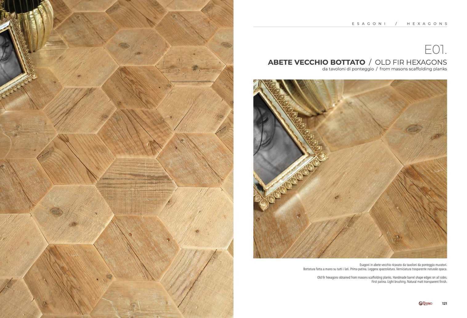 Esagoni in abete vecchio ricavato da tavoloni da ponteggio muratori.