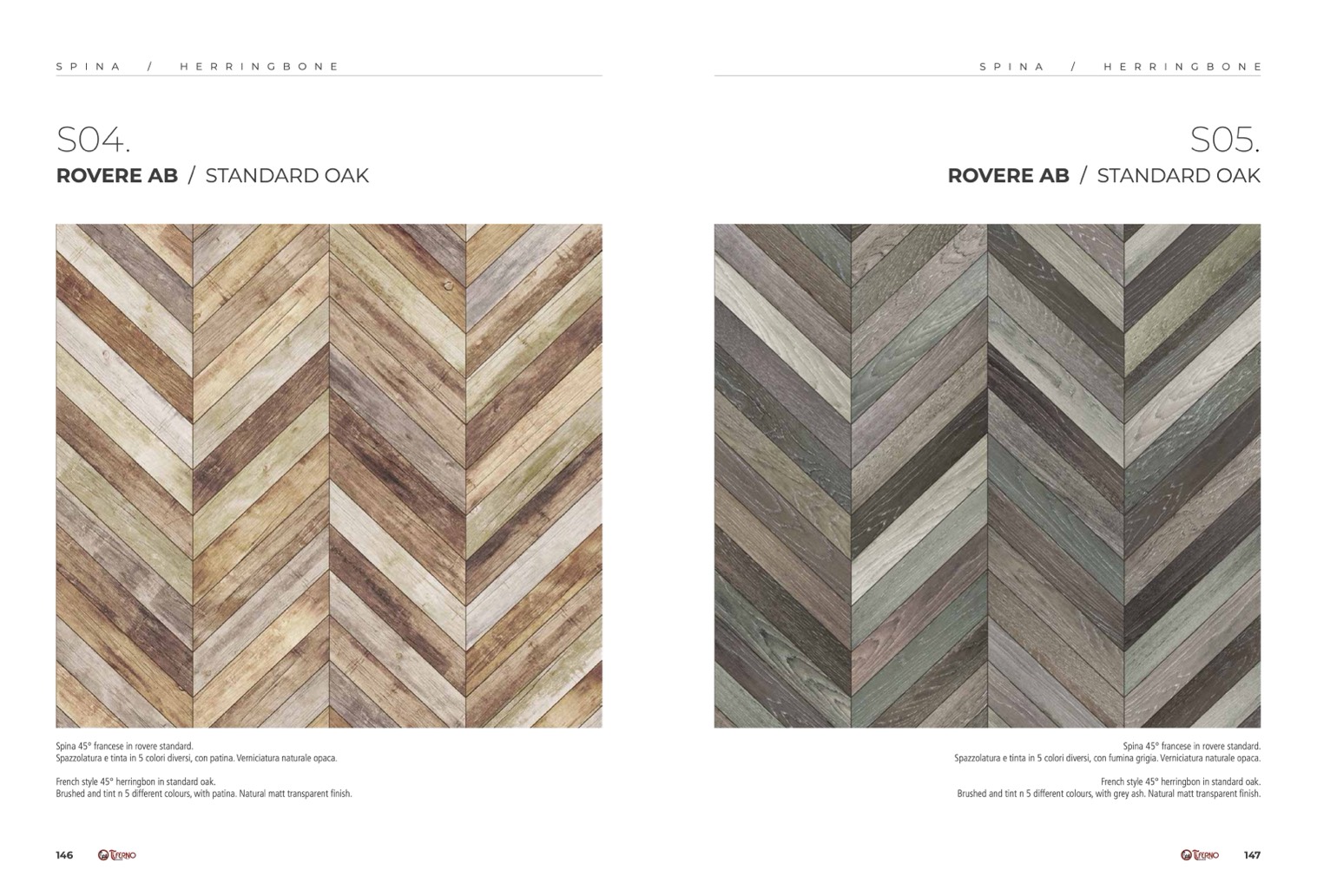 Brushed and tint n 5 different colours, with grey ash. Natural matt transparent finish.