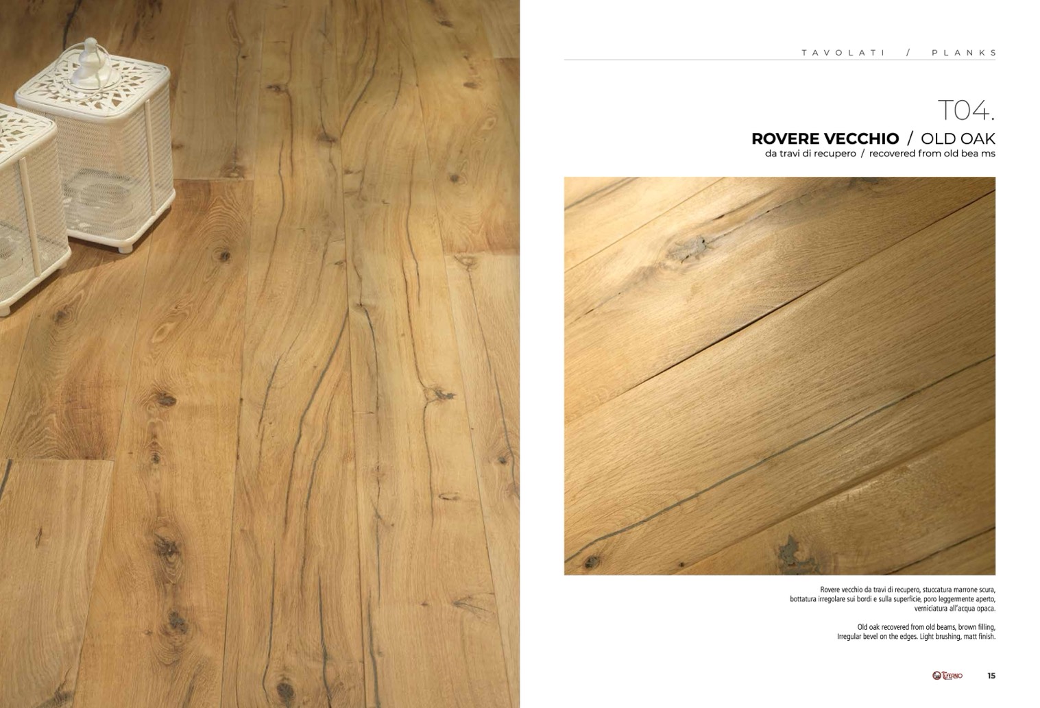 Old oak recovered from old beams, brown filling,