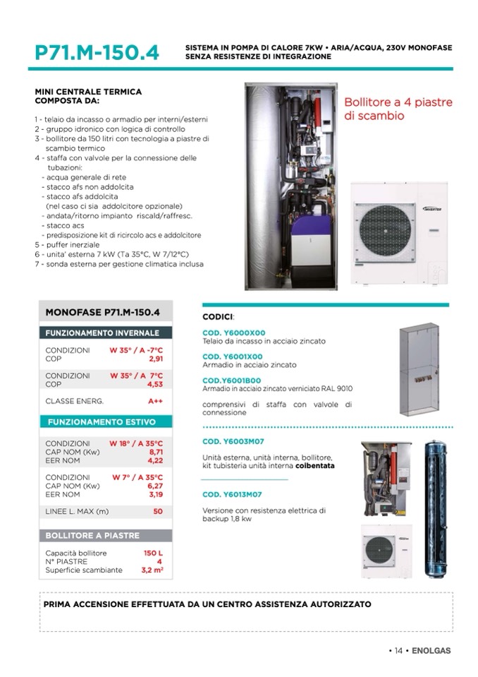 SISTEMA IN POMPA DI CALORE 7KW • ARIA/ACQUA, 230V MONOFASE