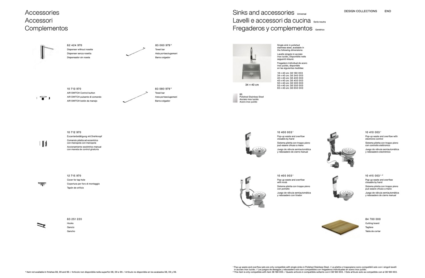 Pop-up waste and overflow sets are only compatible with single sinks in Polished Stainless Steel. / Le pilette e troppopieno sono compatibili solo con i singoli lavelli