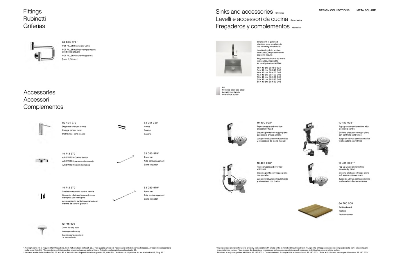 Pop-up waste and overflow sets are only compatible with single sinks in Polished Stainless Steel. / Le pilette e troppopieno sono compatibili solo con i singoli lavelli