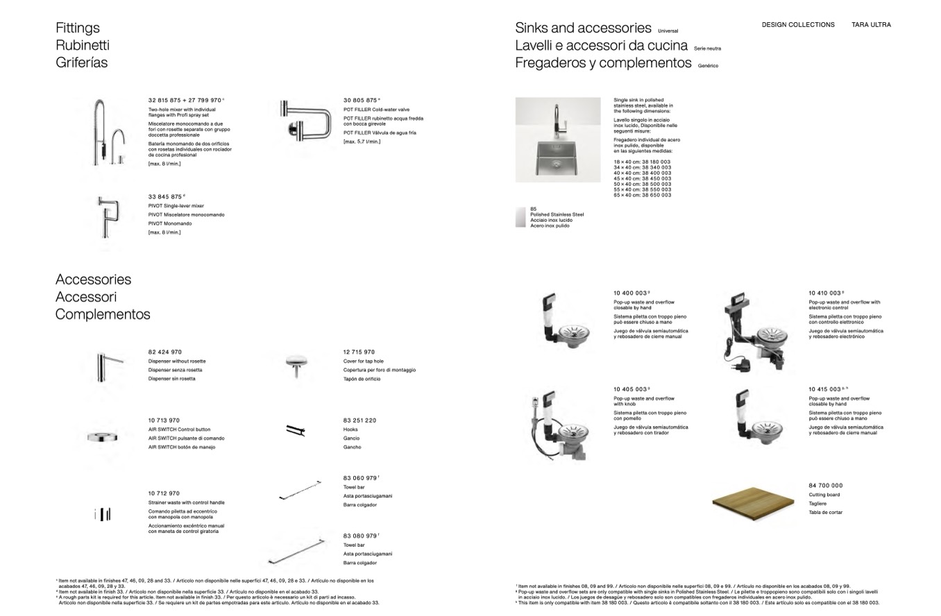 Pop-up waste and overflow sets are only compatible with single sinks in Polished Stainless Steel. / Le pilette e troppopieno sono compatibili solo con i singoli lavelli